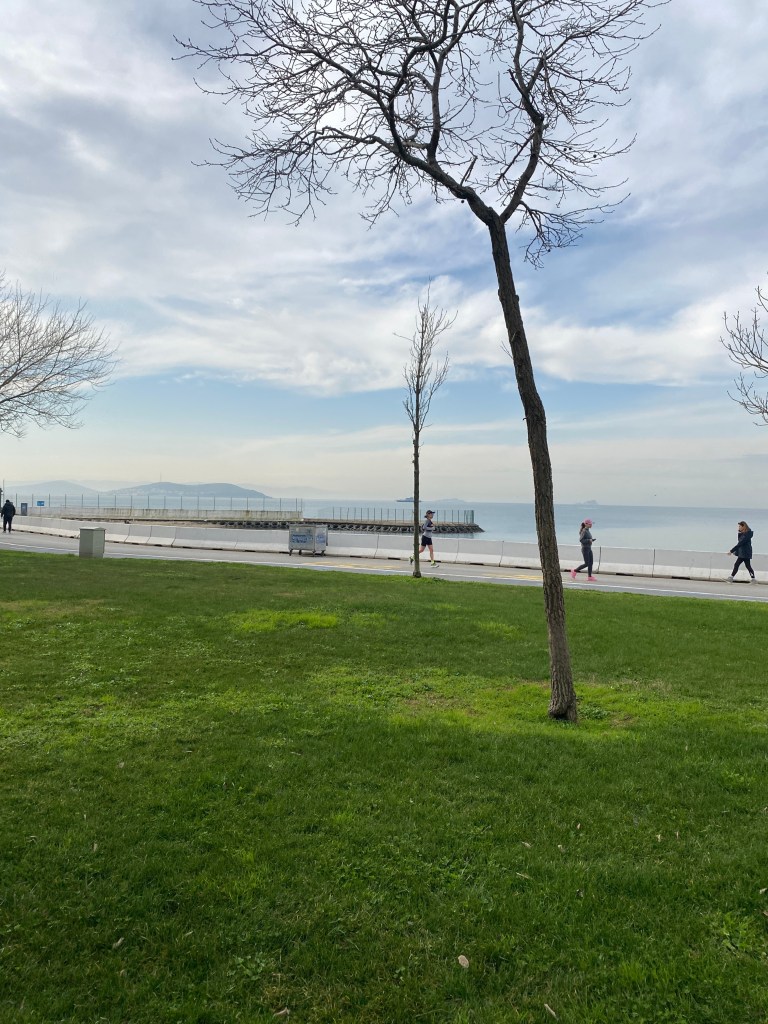 Pahalı ve marka spor kıyafetleri giymiş genç kızlar sahnedeydi.. onlar da sahilde koşuyorlardı adalara bakarak.. aynı zamanda dalgasız denize de bakıyorlardı.. yanlarında taşıdıkları cep telefonlarına da ara sıra bakıyor, sonra da çevrelerindeki insanları çaktırmadan süzüyorlardı.. yaşlılardan bazıları bastonlarından destek alarak aksayarak yürüyorlardı yine sahil boyunca.. çocuklar vardı neşe içinde onlar da sekerek, koşarak yürüyorlardı sahil boyunca.. velhasıl her türden ve yaştan insan vardı güneşli bu cumartesinde sahilde…