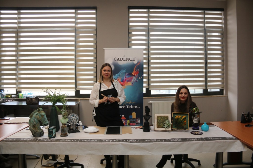 Workshop uygulama öncesi Prof. Dr. Nermin Özcan Özer hocamız ve Jale Denizaltı hocamız birer açılış konuşması yaptılar, bilgiler verdiler.. Uygulama hocası: Vera Kayador, workshop sonrasında çalışmaları öğrencilere ve hocalara çalışmaları tek tek gösterdi…