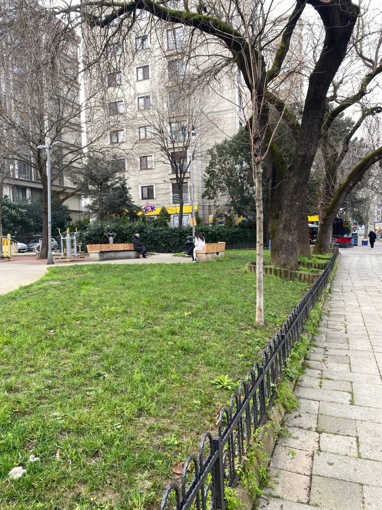 Parkın yeşilliklerini gördüm.. ilerdeki park banklarına karşılıklı oturmuş iki kadın mutlu mesut duruyorlardı.. biri, genç olanı telefonuna dalıp gitmişti.. siyahlı kadın uzaklara bakıyor, birilerini veya birini bekliyordu.. hemen yanındaki markette de yeni gelmiş meyve sebzeyi dizen elinde sigara kabadayı kılıklı zayıfça adam vardı…