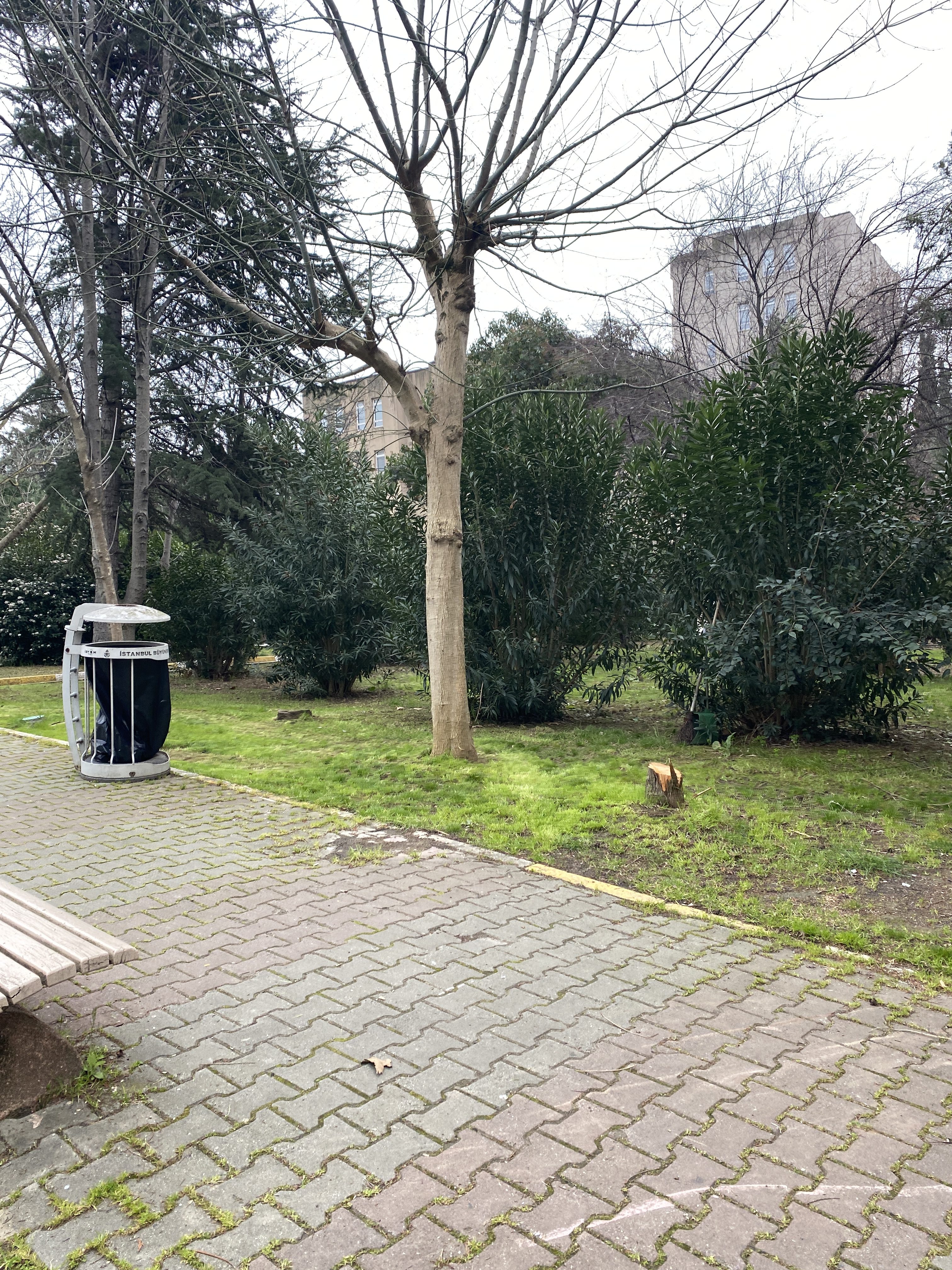 Yeşil çimenler kaldırım taşlarından ayrılıyordu.. sonra sıra sıra banklar vardı öğrencilerden bazıları da oturuyor ve kendi aralarında derslerin muhabbetini yapıyorlardı.. çöp kutusu hemen ilerde, başka ağaçlar da yan yana çimenlerde yükseliyordu gri, yarı bulutlu gökyüzüne…